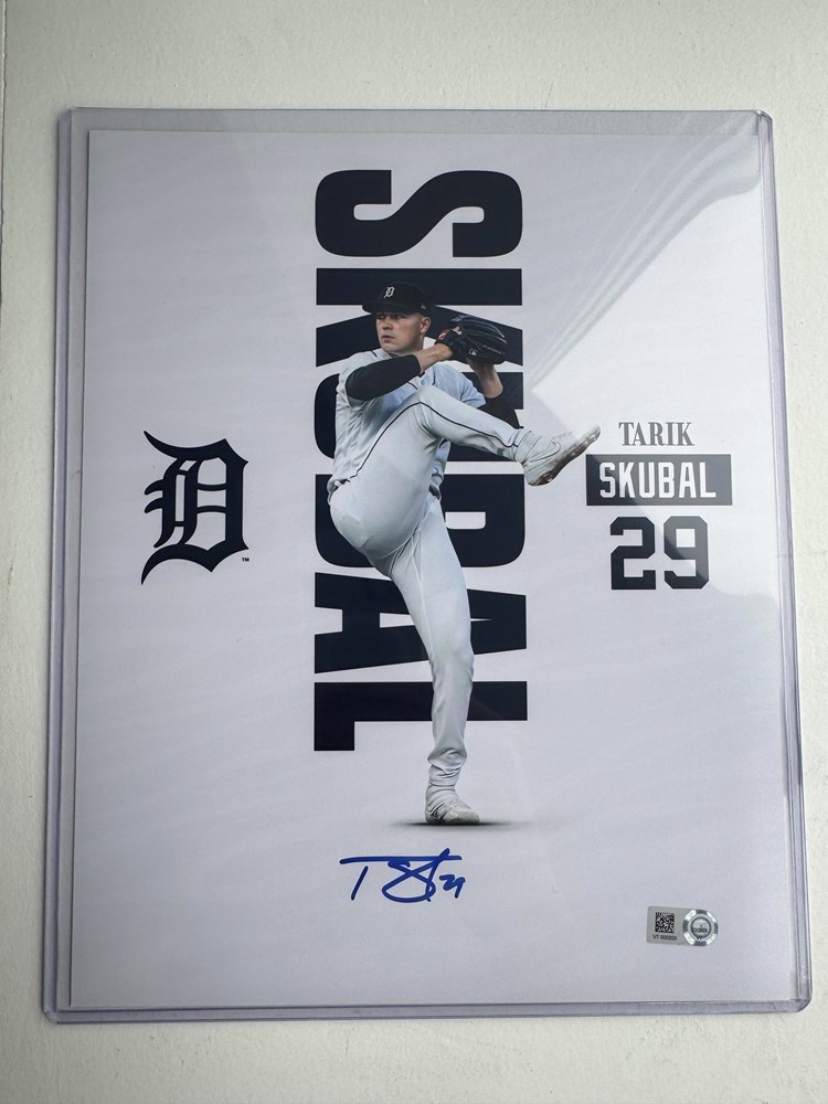 Autographed 8x10 photo signed by Detroit Tigers ace Tarik Skubal. If present at gala - Pick up after auction ends. If not present at gala, please email brysonandbakerbattfoundation@gmail.com