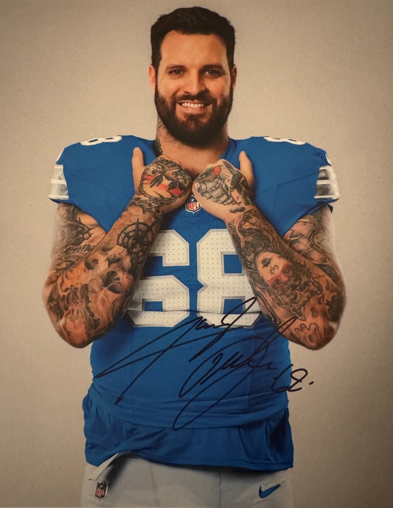 Autographed photo signed by Detroit Lions offensive tackle Taylor Decker 8x10 photo If present at gala - Pick up after auction ends. If not present at gala, please email brysonandbakerbattfoundation@gmail.com
