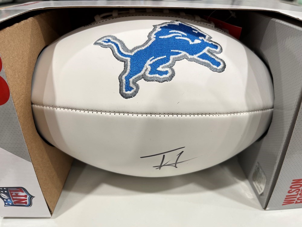 Autographed Detroit Lions football signed by defensive back Terrion Arnold If present at gala - Pick up after auction ends. If not present at gala, please email brysonandbakerbattfoundation@gmail.com